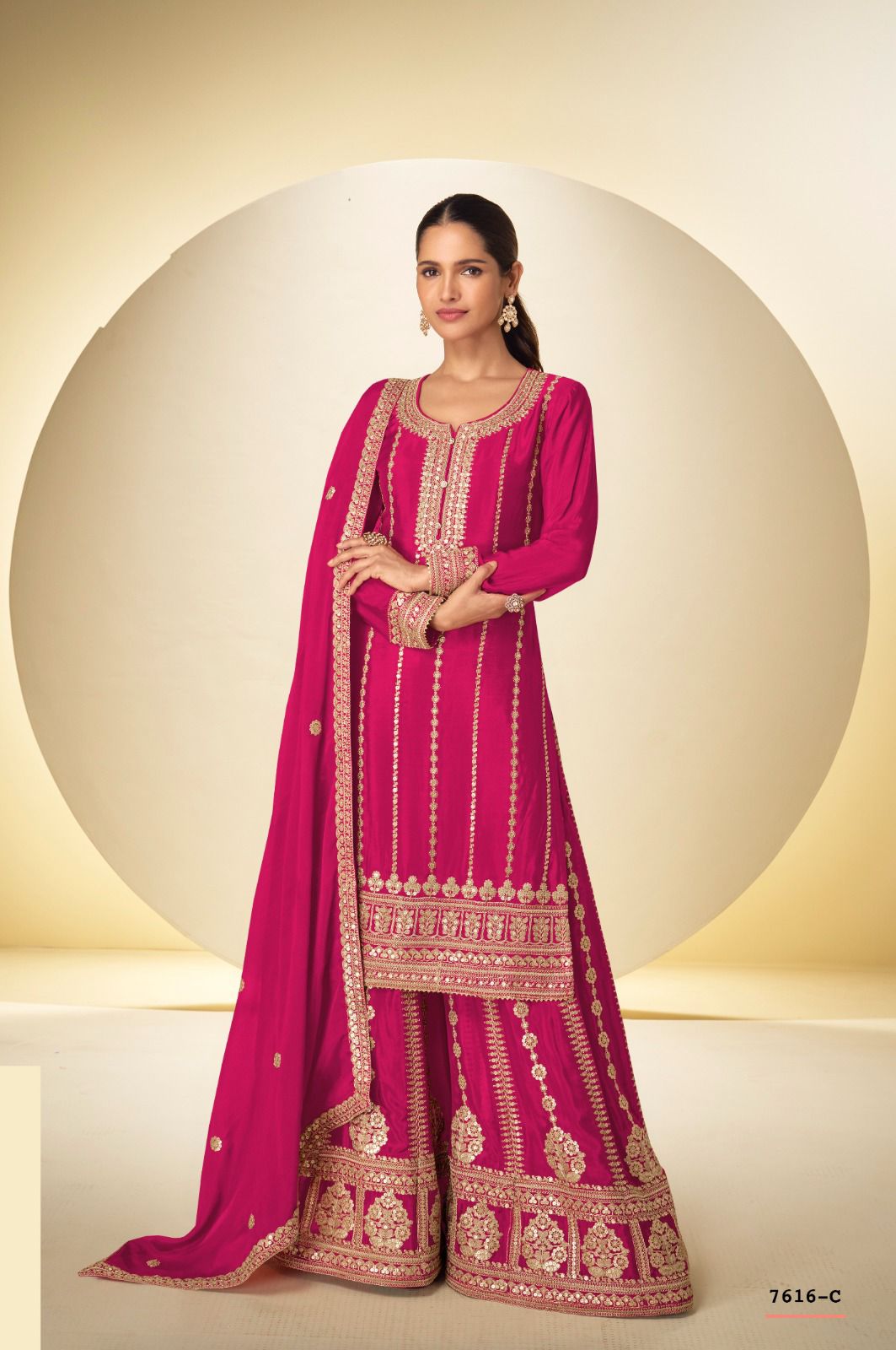 | Fabric Details: | Top - Real Chinon Dupatta - Real Chinon Plazoo - Real Chinon |