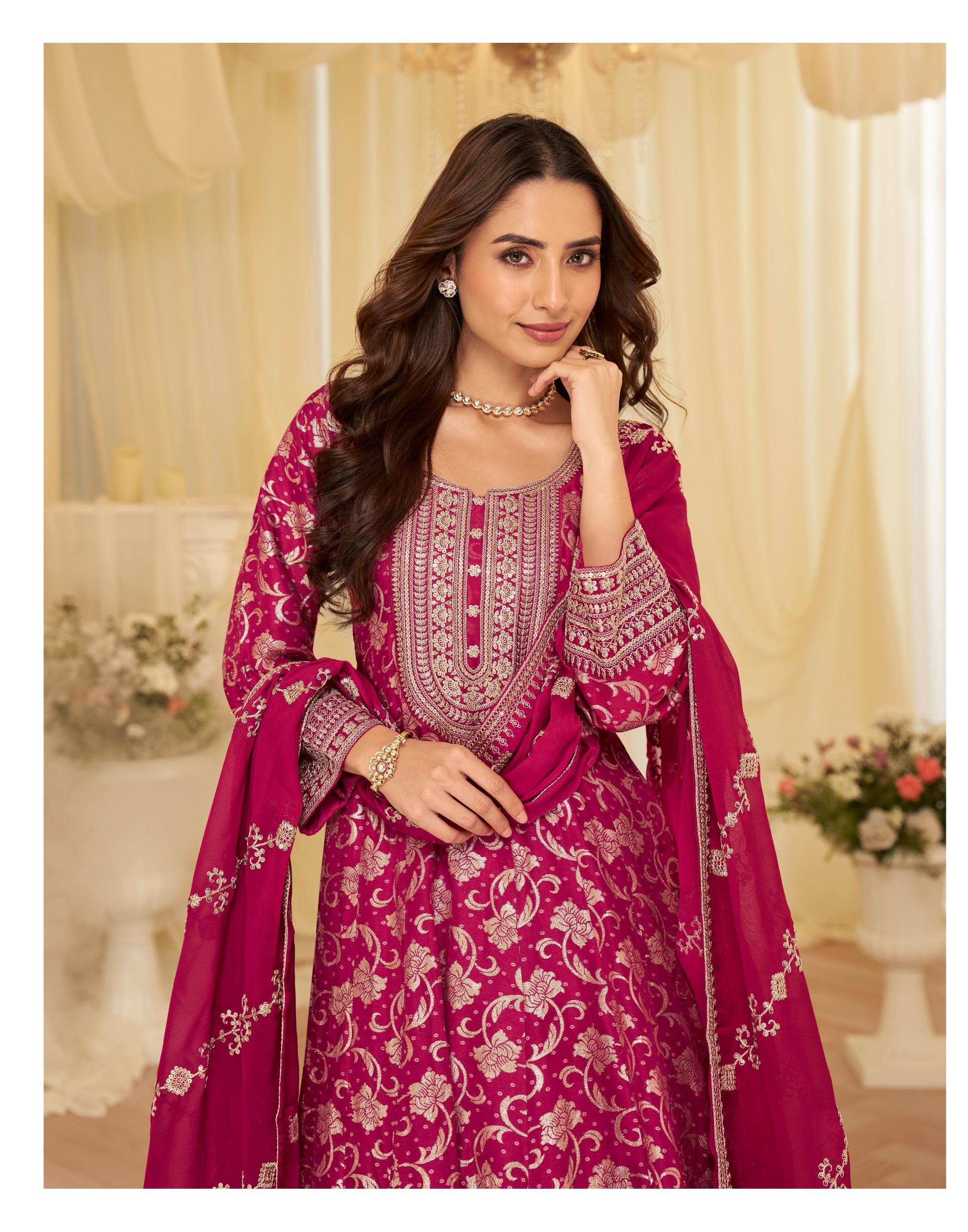 | Fabric Details: | PURE VISCOS JACQUARD SILK ( HEAVY LOOK FRONT AND BACK EMBROIDERED PURE VISCOS JACQUARD SILK GOWN WITH HEAVY EMBROIDERED DUPATTA ) |