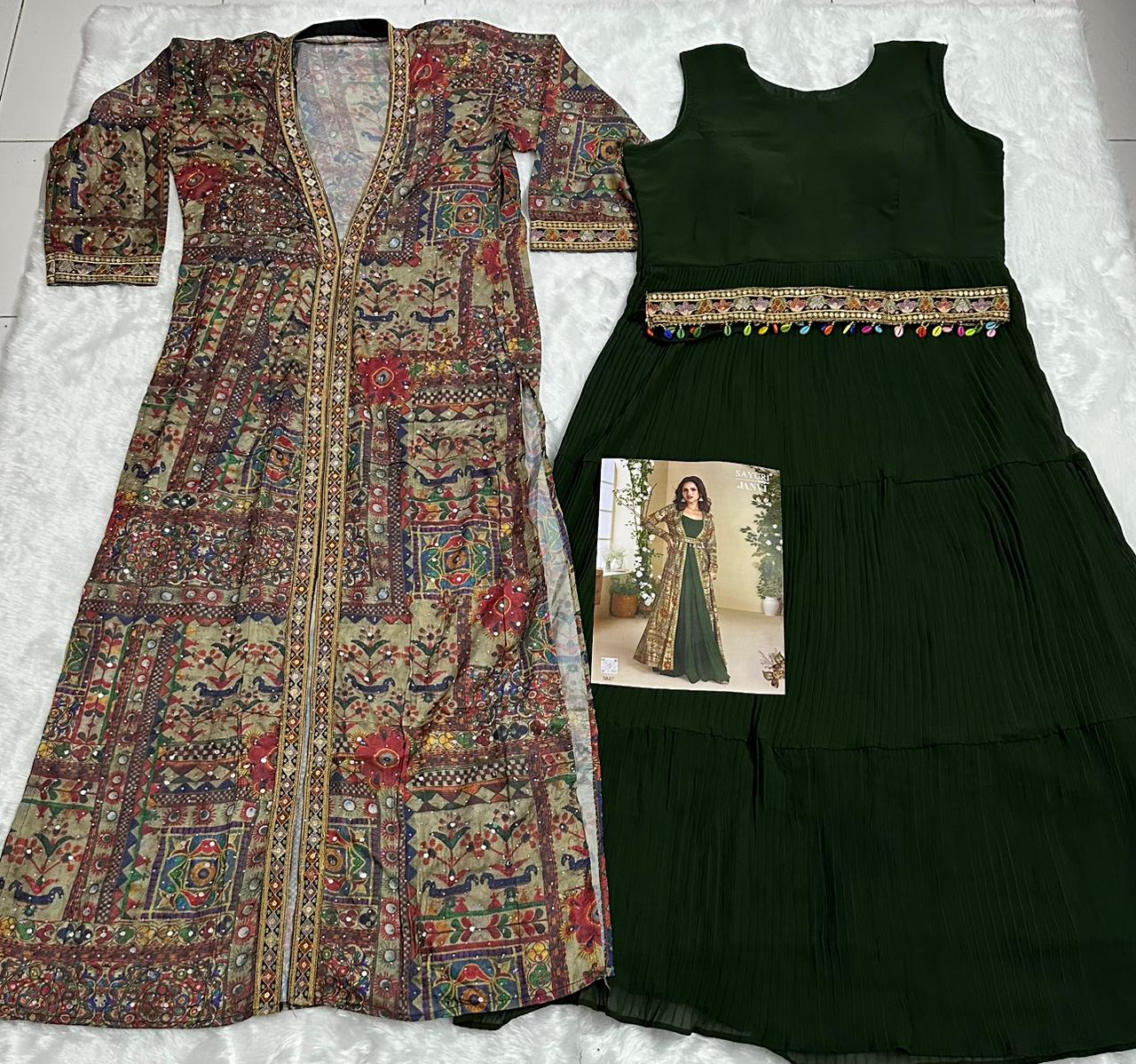 | Fabric Details: | TOP :- Heavy Fox Georgette Inner :- santoon silk Size :- max 42" Stich Length :- up to 54" SHRUG :- Real Silk With Print And Hand Work Work With Fancy Less Be |