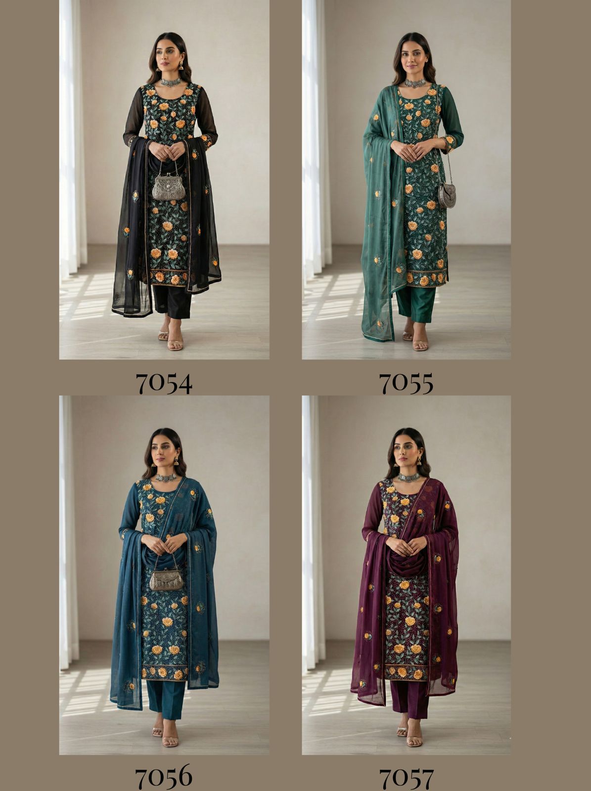 | Fabric Details: | Embroidered With Multi Thread And Sequins Embroidery WorK Georgette Top & Dupatta Santoon Inner & Bottom |