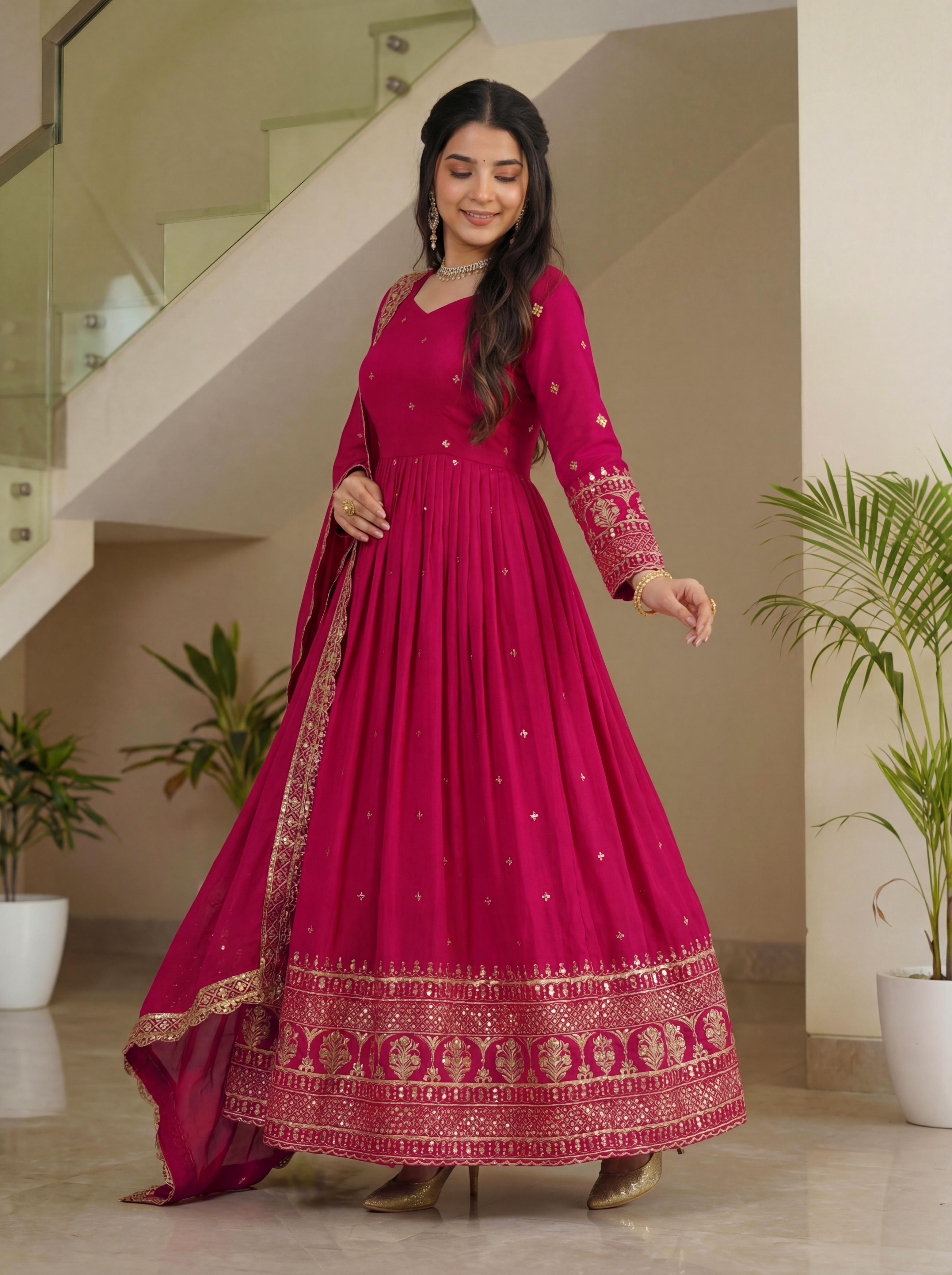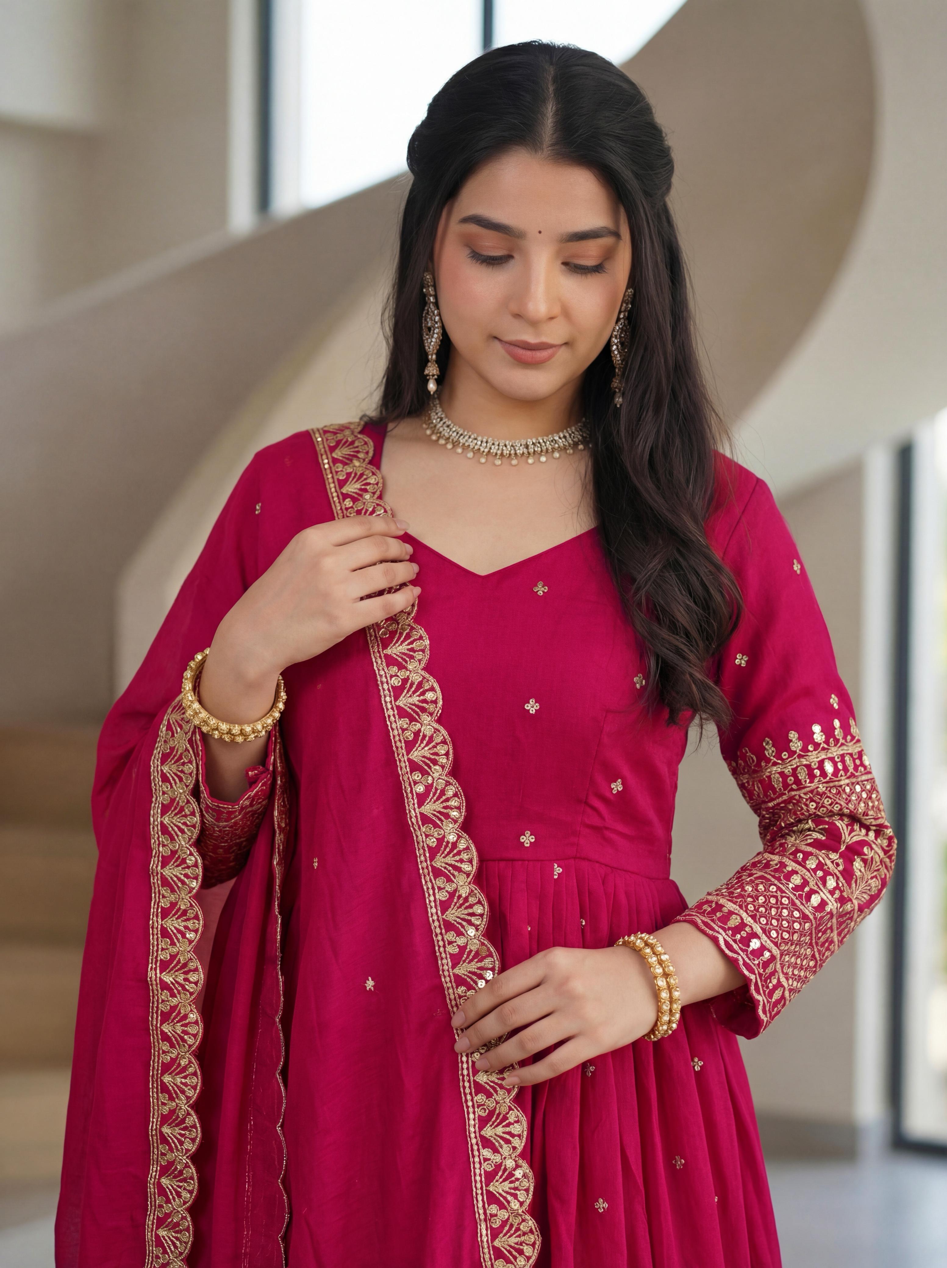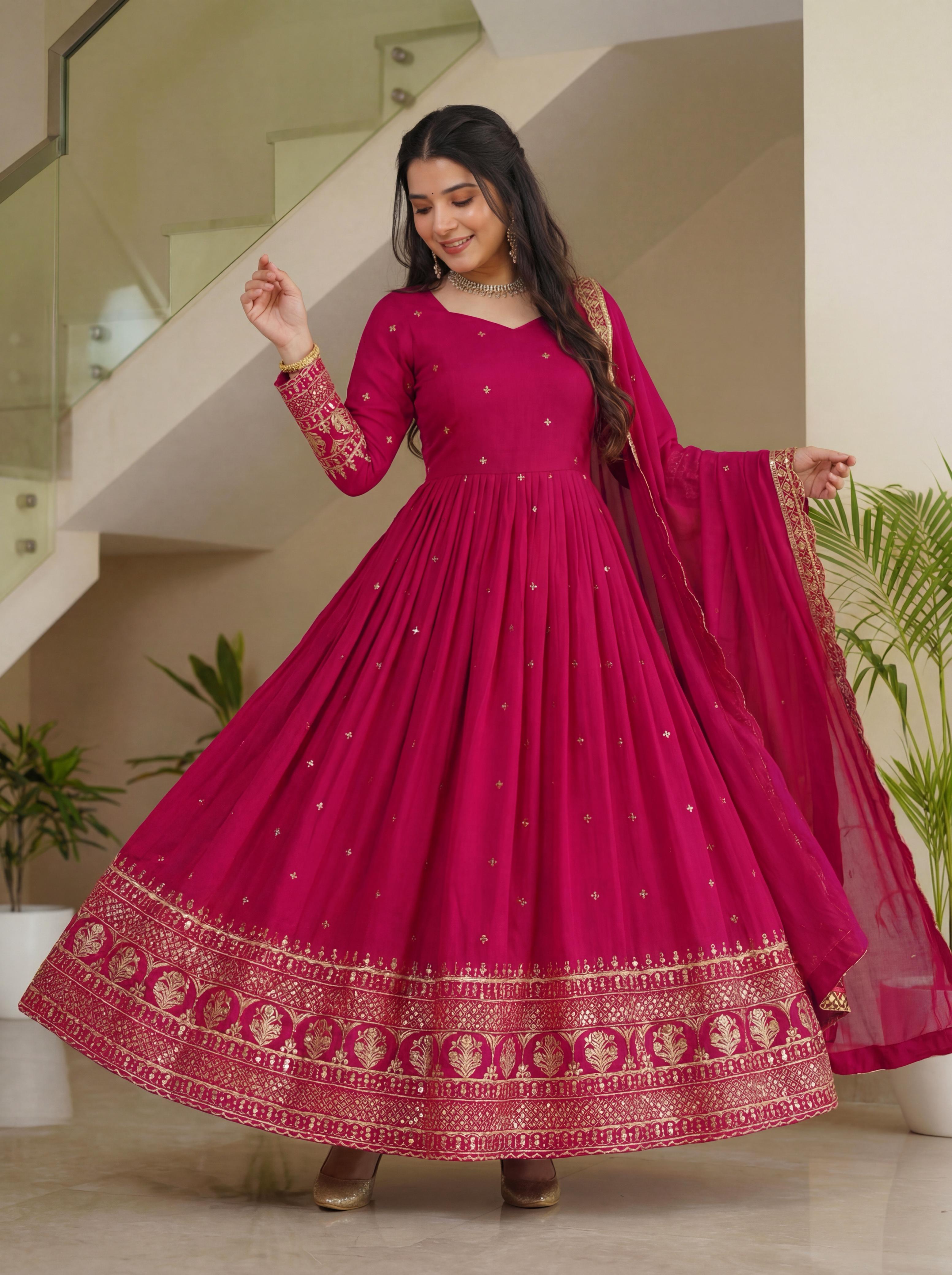 | Fabric Details: | Gown Vichitra Silk Embroidery Sequence Zari Work Duppta Embroidery Zari Sequence Design Work Bottom Crap Silk |
