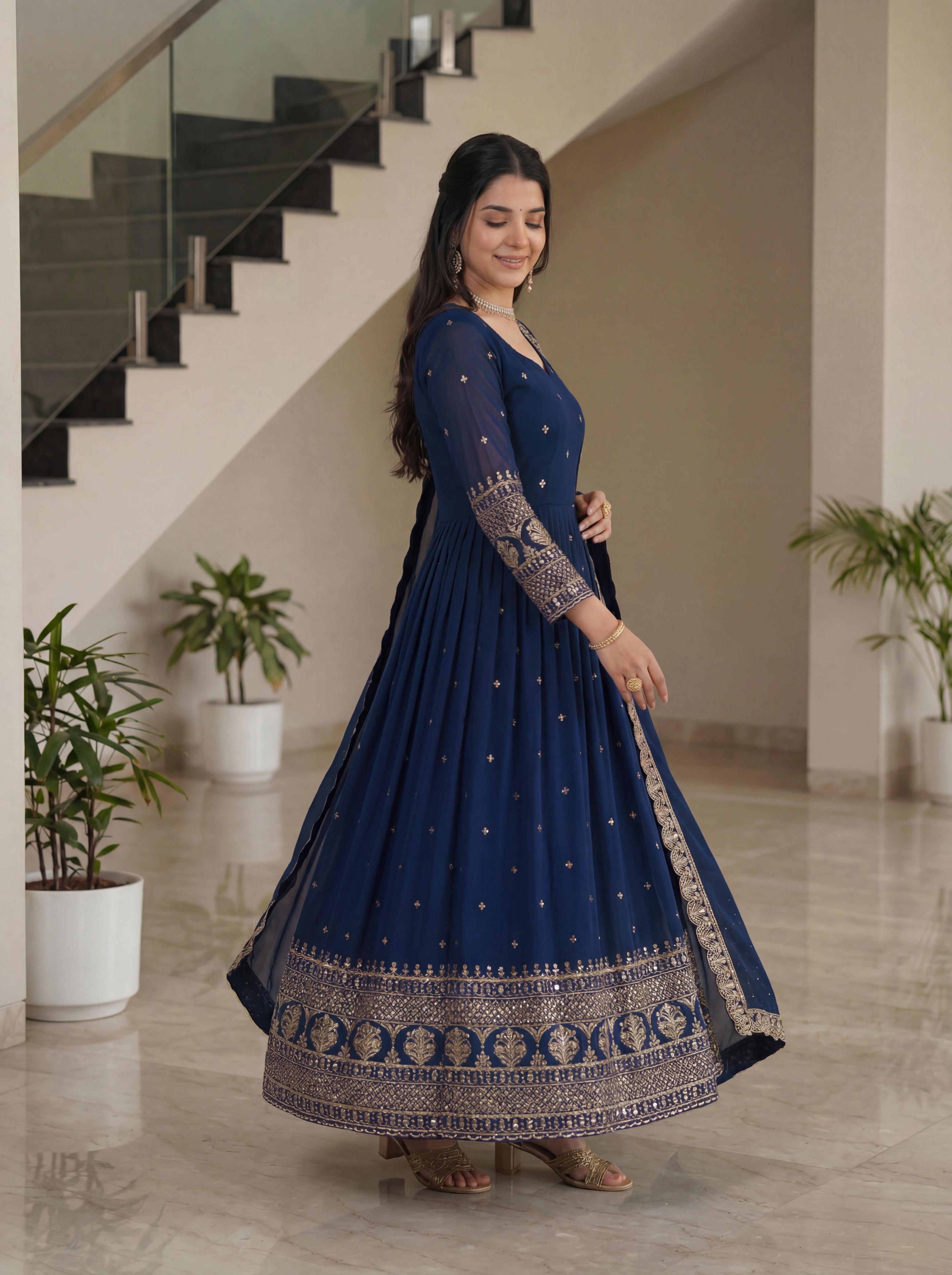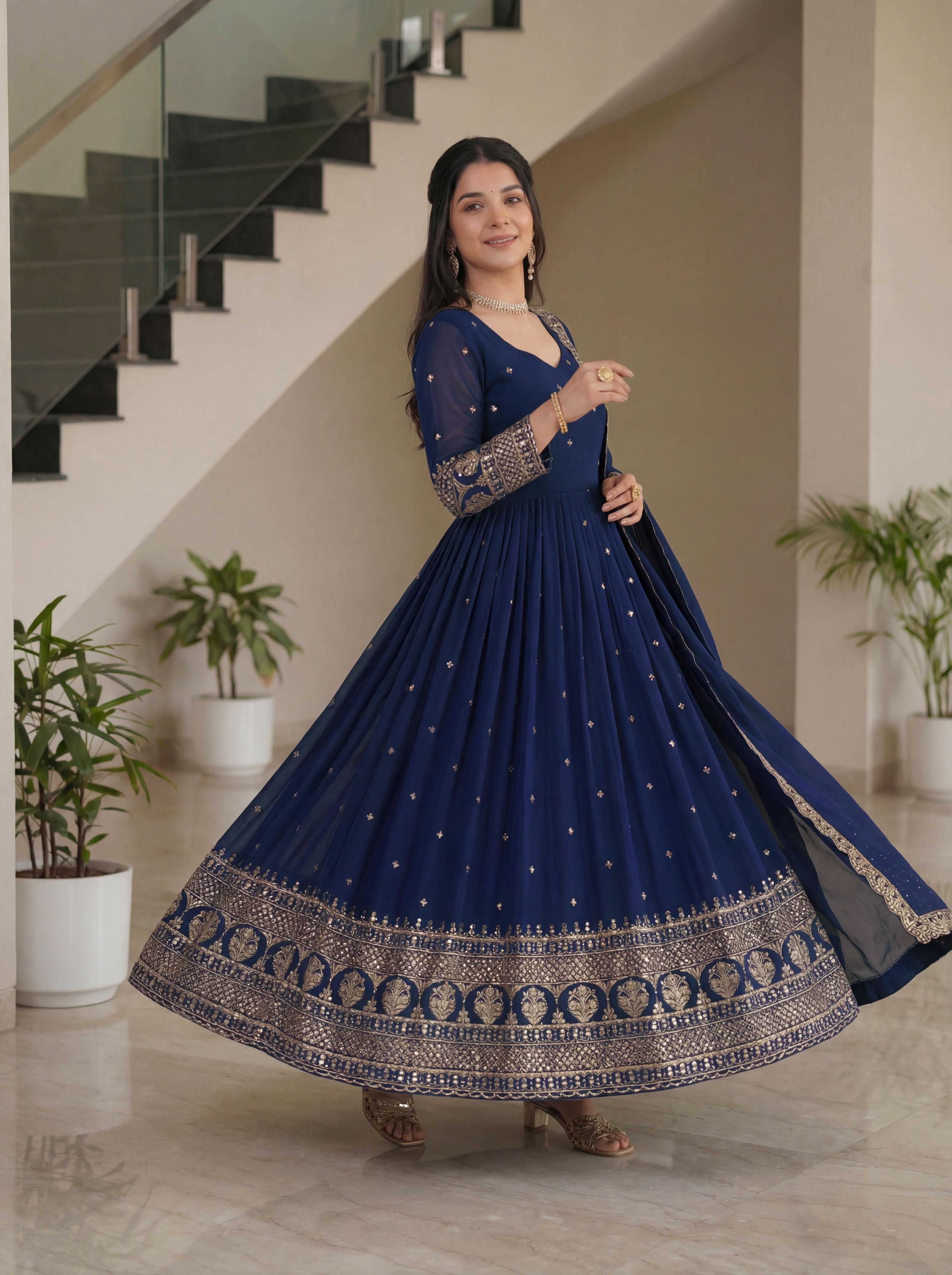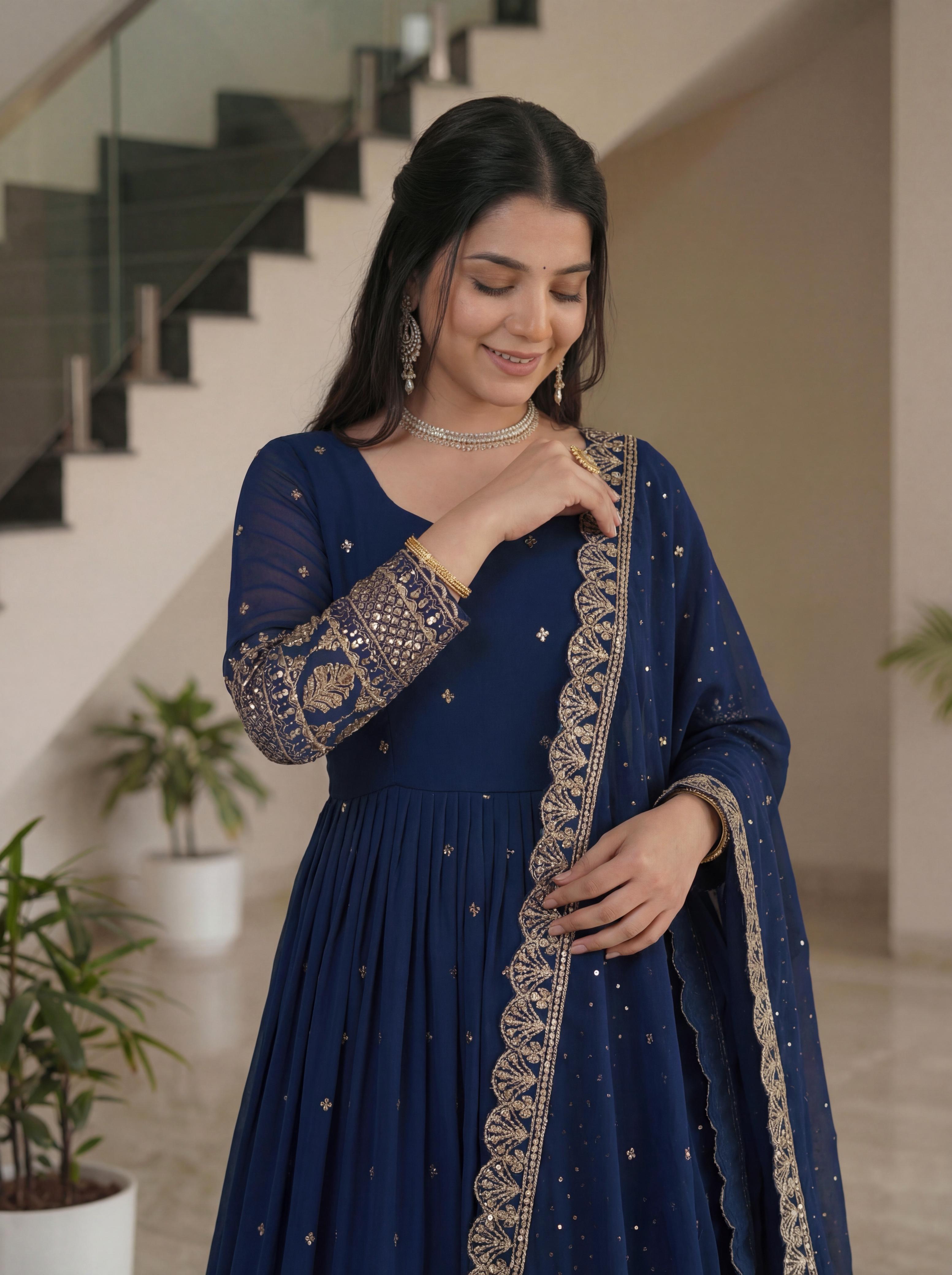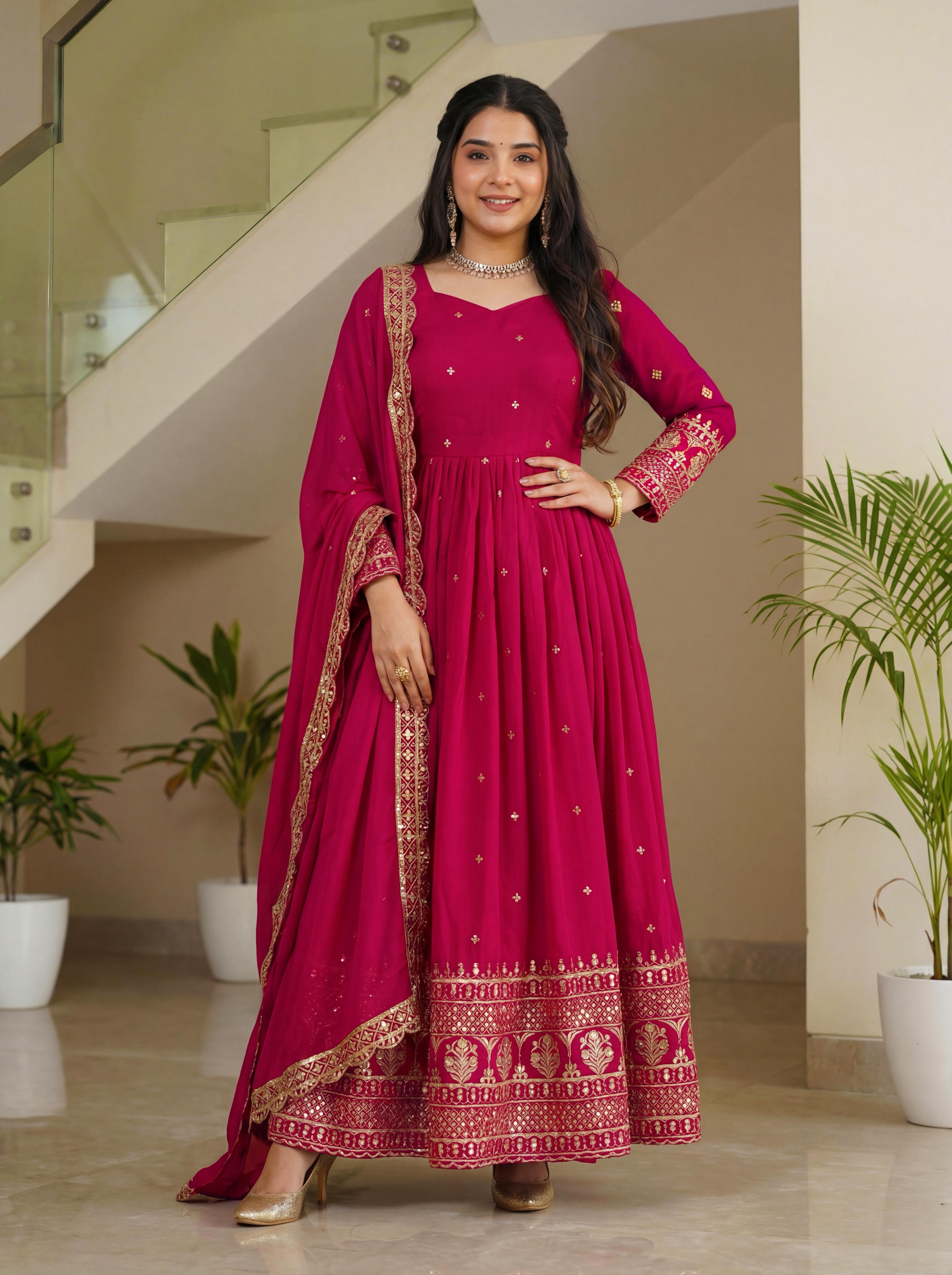 | Fabric Details: | Gown Vichitra Silk Embroidery Sequence Zari Work Duppta Embroidery Zari Sequence Design Work Bottom Crap Silk |