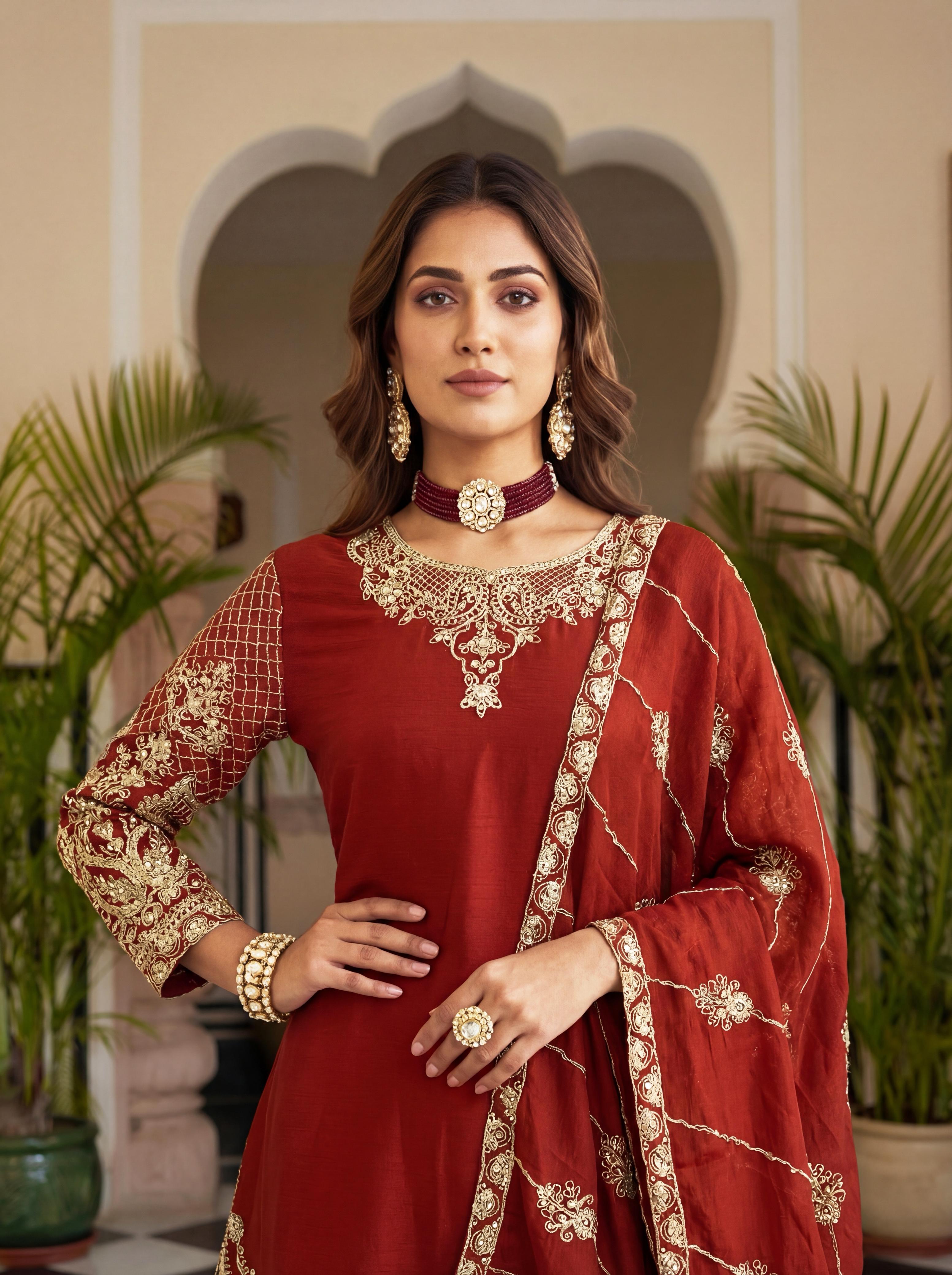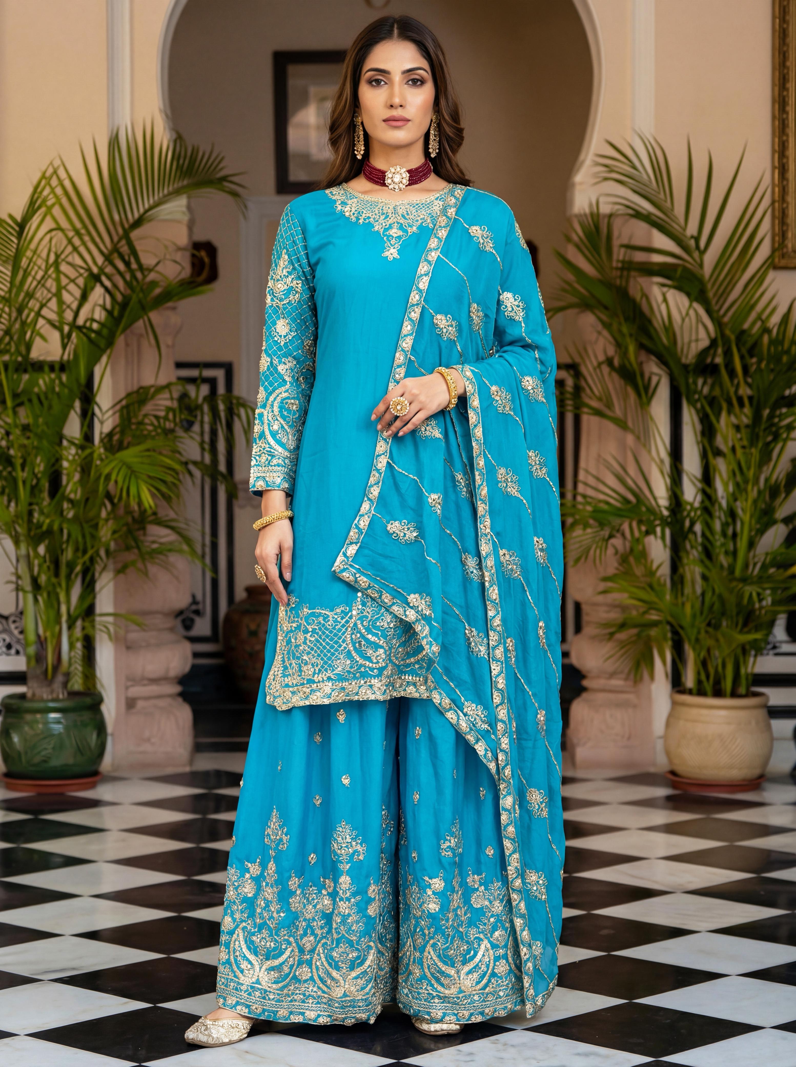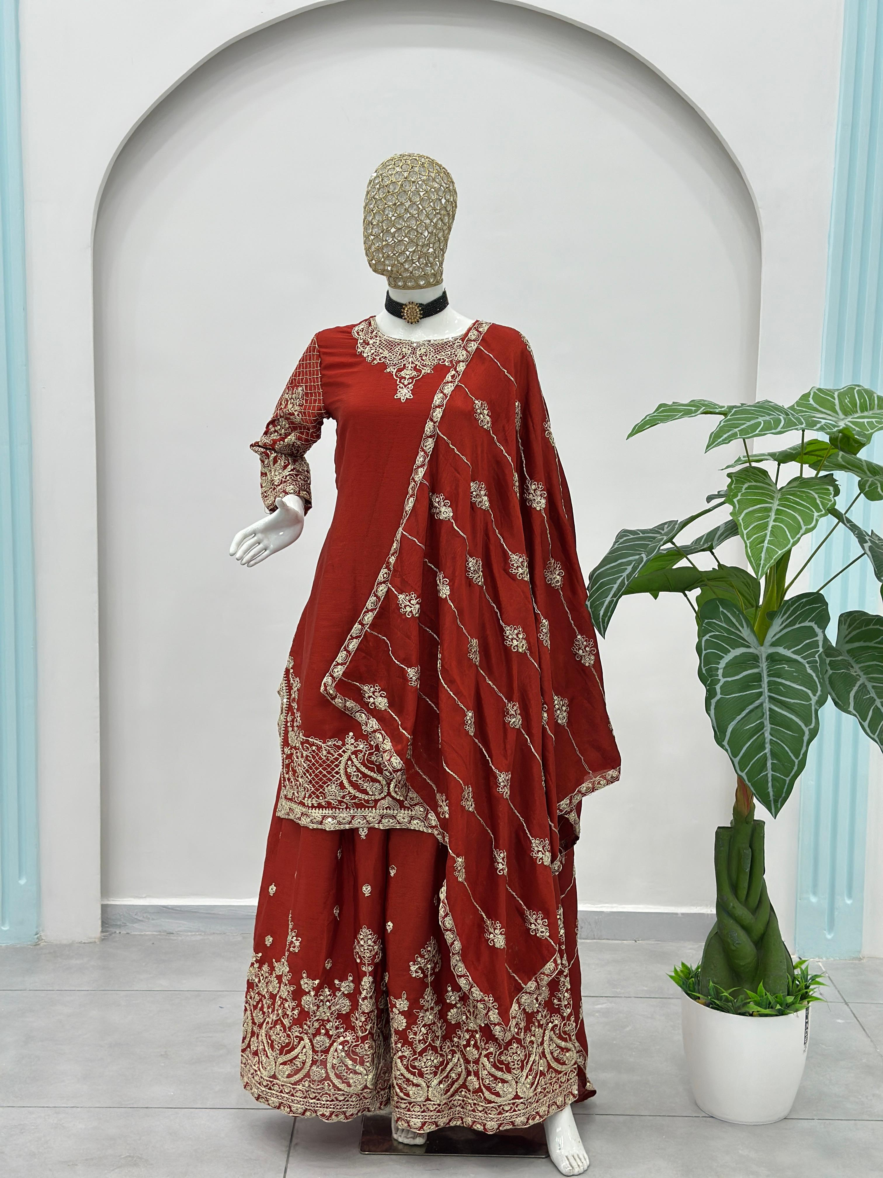 | Fabric Details: | Kurti Chinon Silk Embroidery Codding Sequence Zari Duppta Chinon Silk Embroidery Codding Sequence Design Work Bottom Chinon Silk |