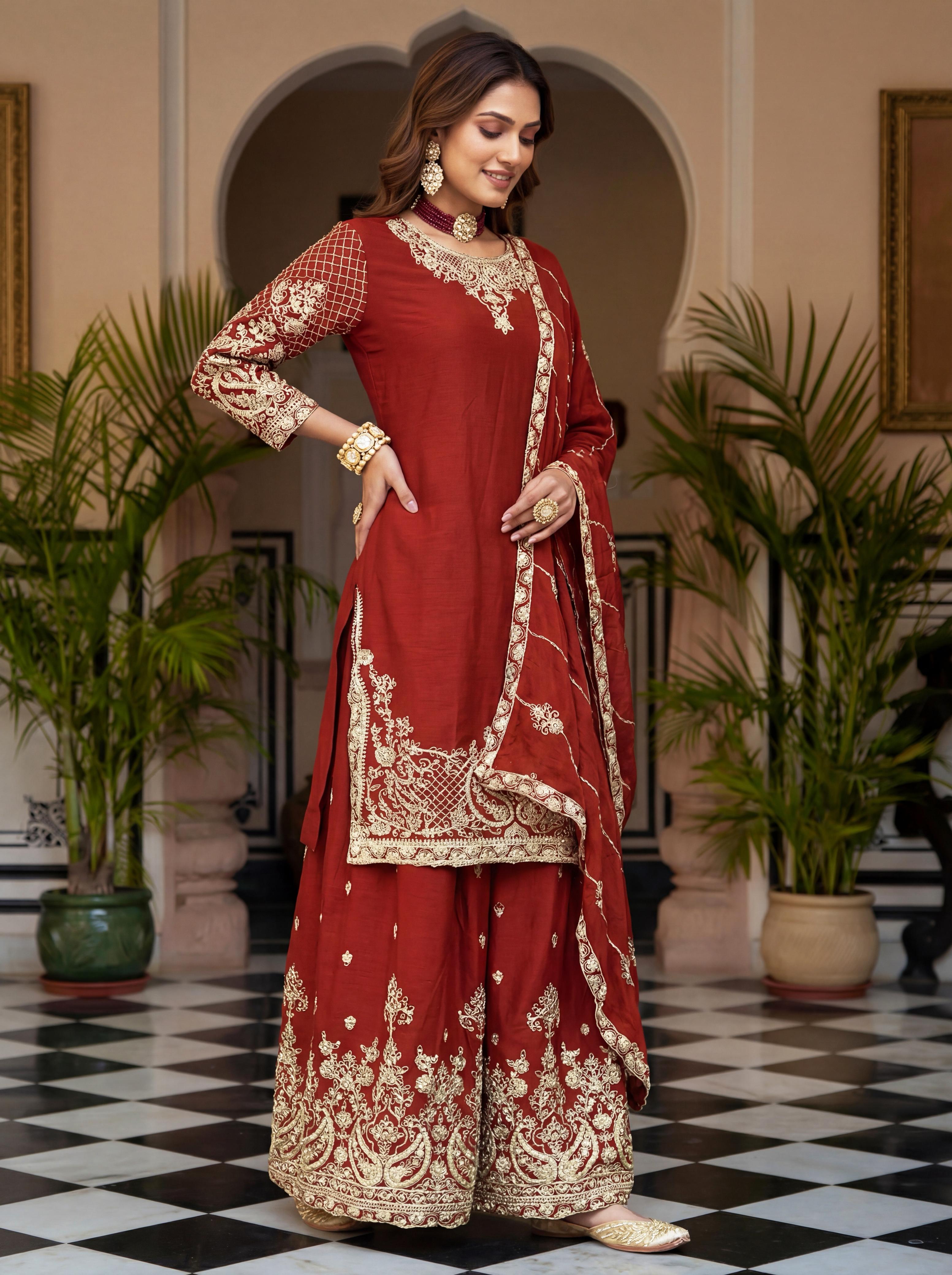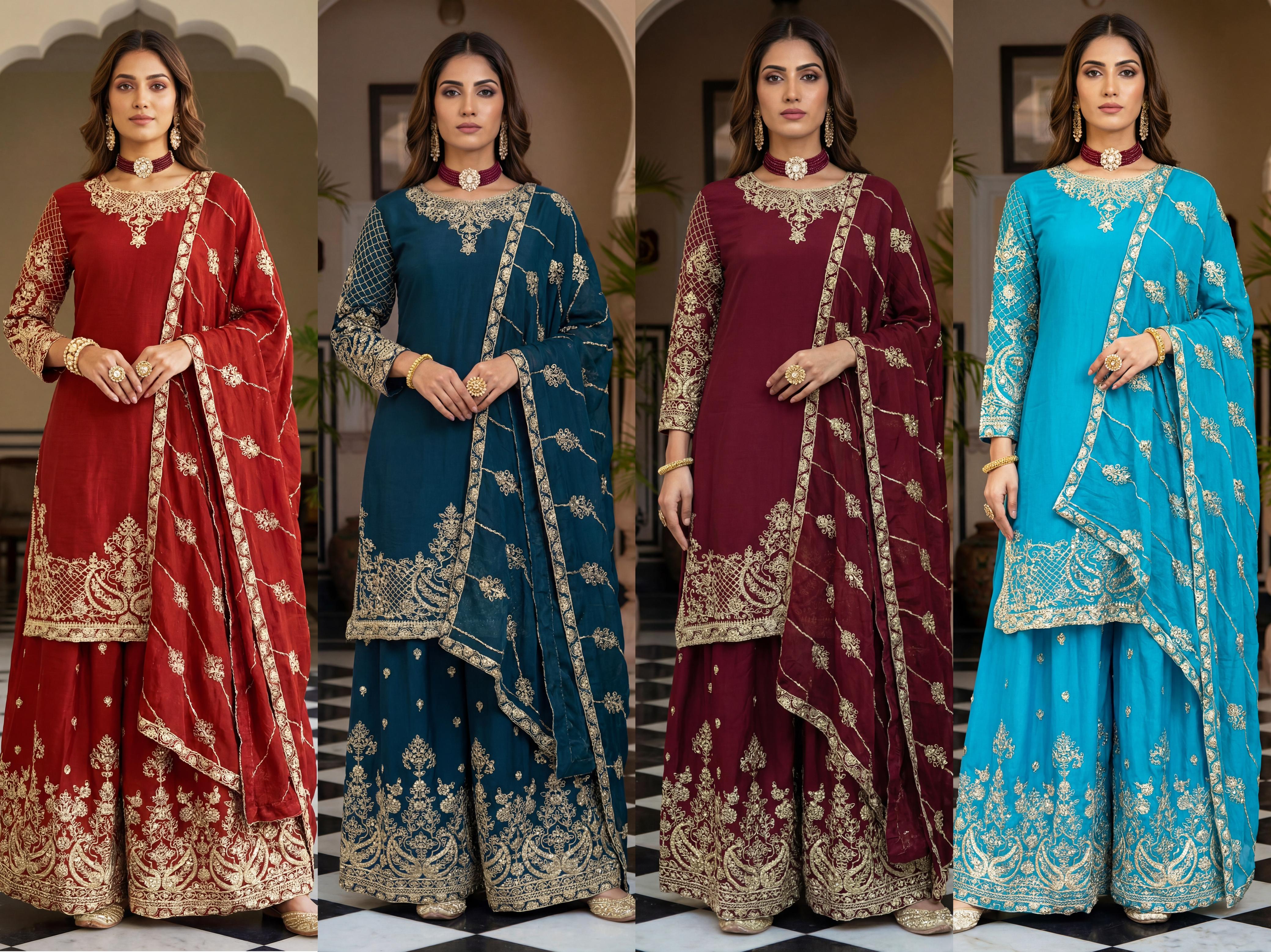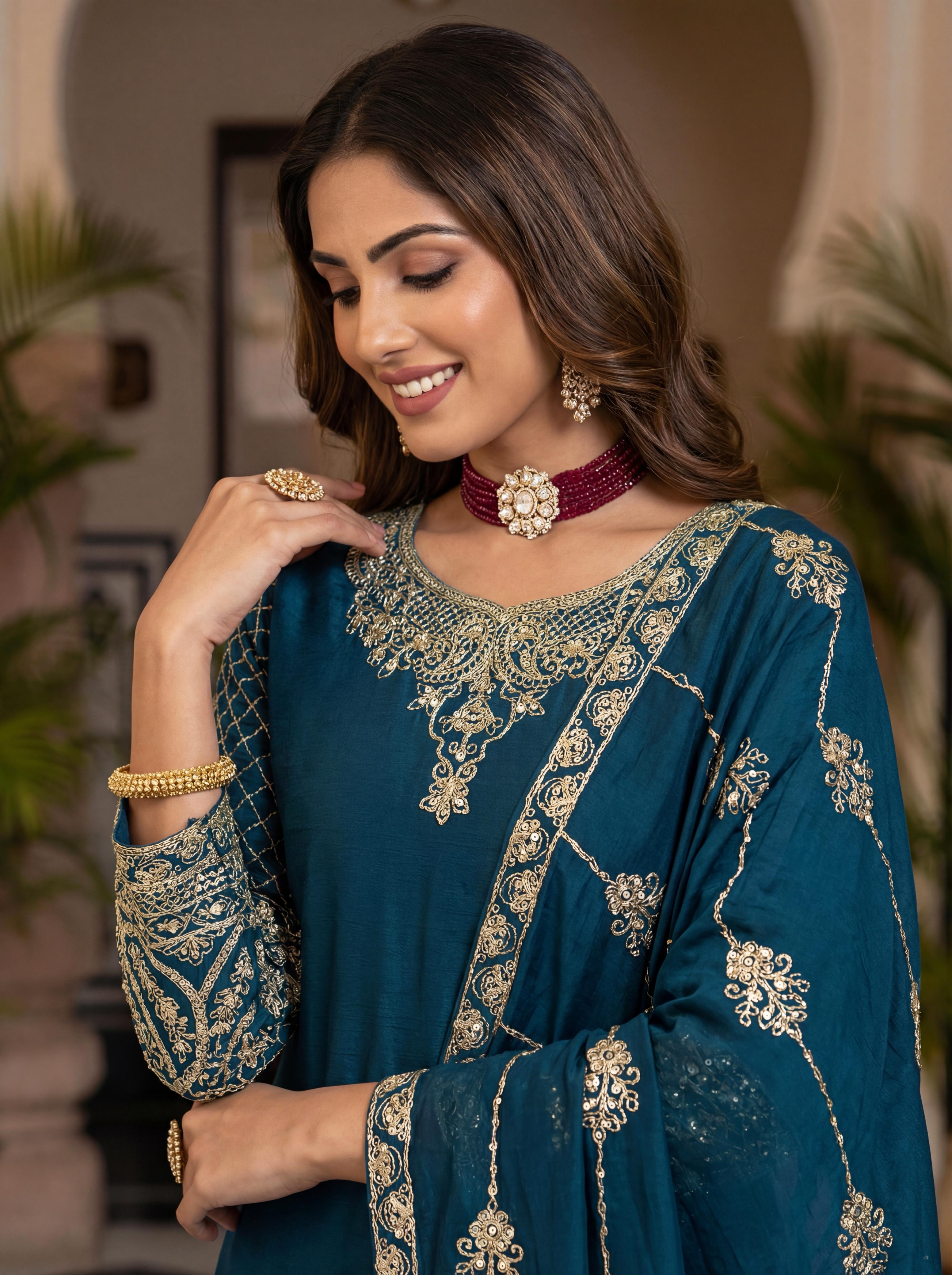 | Fabric Details: | Kurti Chinon Silk Embroidery Codding Sequence Zari Duppta Chinon Silk Embroidery Codding Sequence Design Work Bottom Chinon Silk |