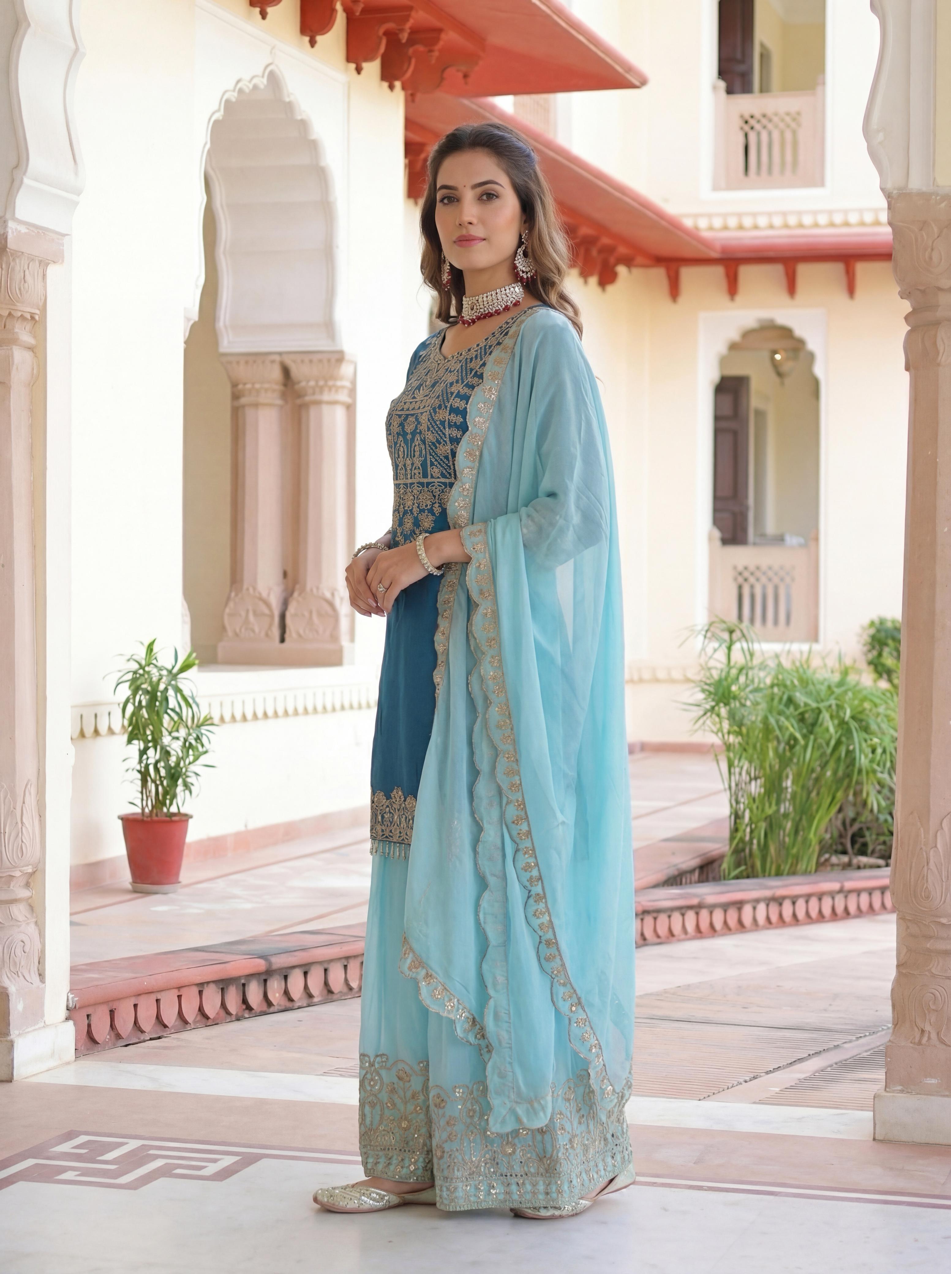 | Fabric Details: | Chinon Silk Duppta Embroidery Codding Sequence Design Work Bottom Work: Embroidery Codding Sequence Design Work |