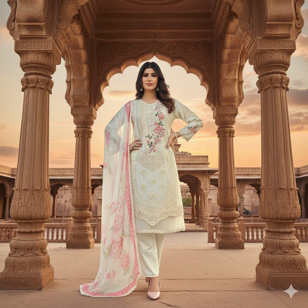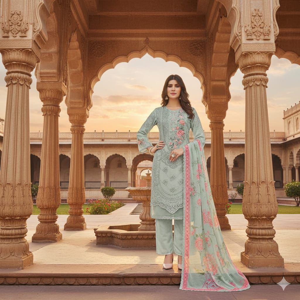 | Fabric Details: | TOP :- Heavy Fox Georgette With Multi Thread & Sequence Embroidery Stitch + Khatli Work Sleeves :- Heavy Fox Georgette Inner :- Heavy Dull Santoon Length :- Max Up to 43” Size :- Max Up to 50” |