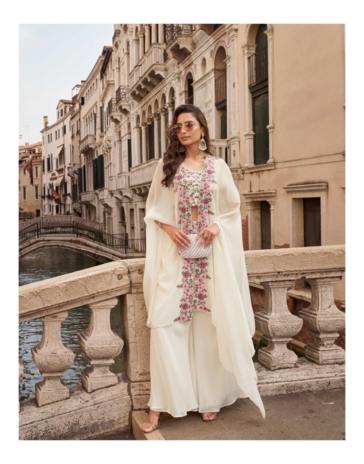 | Fabric Details: | PREMIUM REAL CHINON SILK / VISCOS JACQUARD SILK ( TREDY FESTIVE LOOK FRONT AND BACK EMBROIDERED SHRUG WITH EMBROIDERED BLOUSE ON HAND EMBELLISHED MIRROR WORK WITH STYLIST PLAZZO ) |