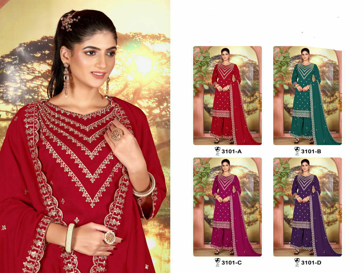 | Fabric Details: | TOP :- Heavy Vichitra With Embroidery Work and Ston Work Sleeves :- Vichitra With Work Inner :- Santoon Silk Length :- Max Up to 46” Size :- Max Up to 54” BOTTOM :- Vichitra and Santoon Silk DUPATTA :- Heavy Vichitra With Work |